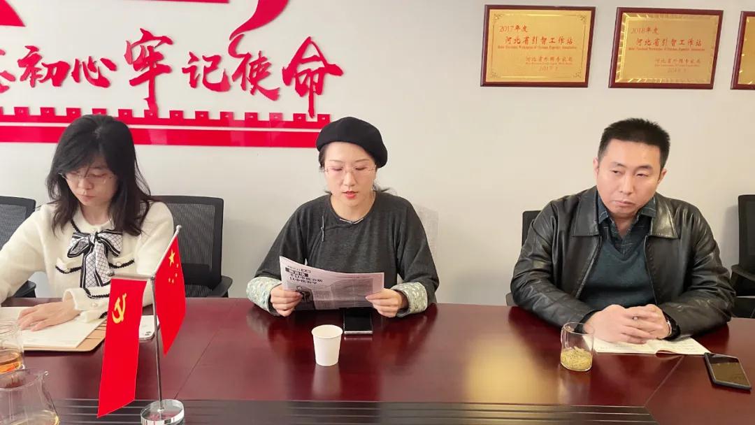 河北省寰球科技创新服务中心联合党支部开展党课学习活动,深入学习贯彻党的十九届六中全会精神
