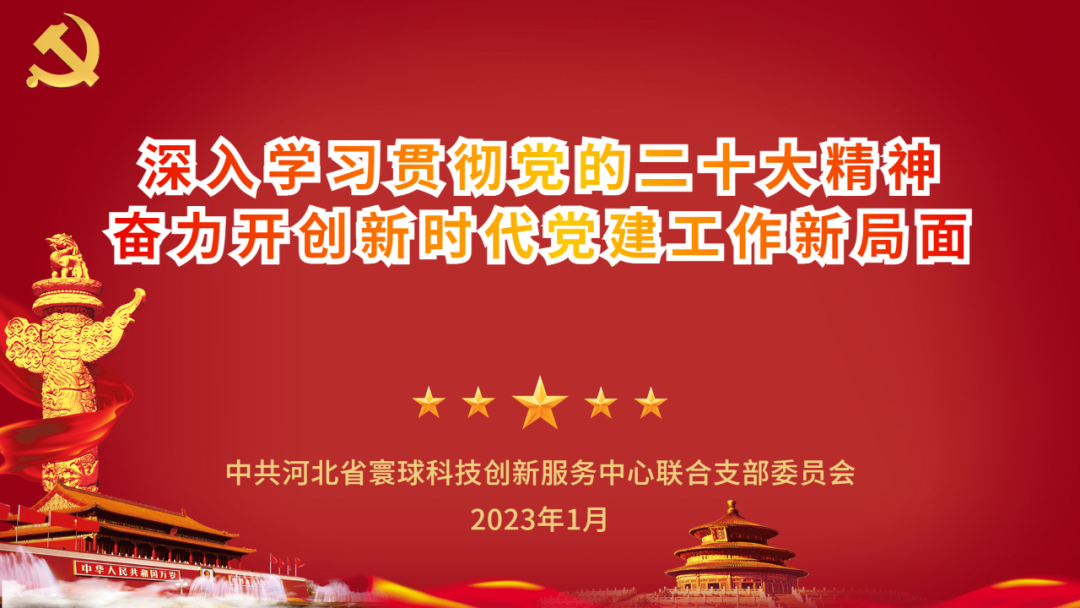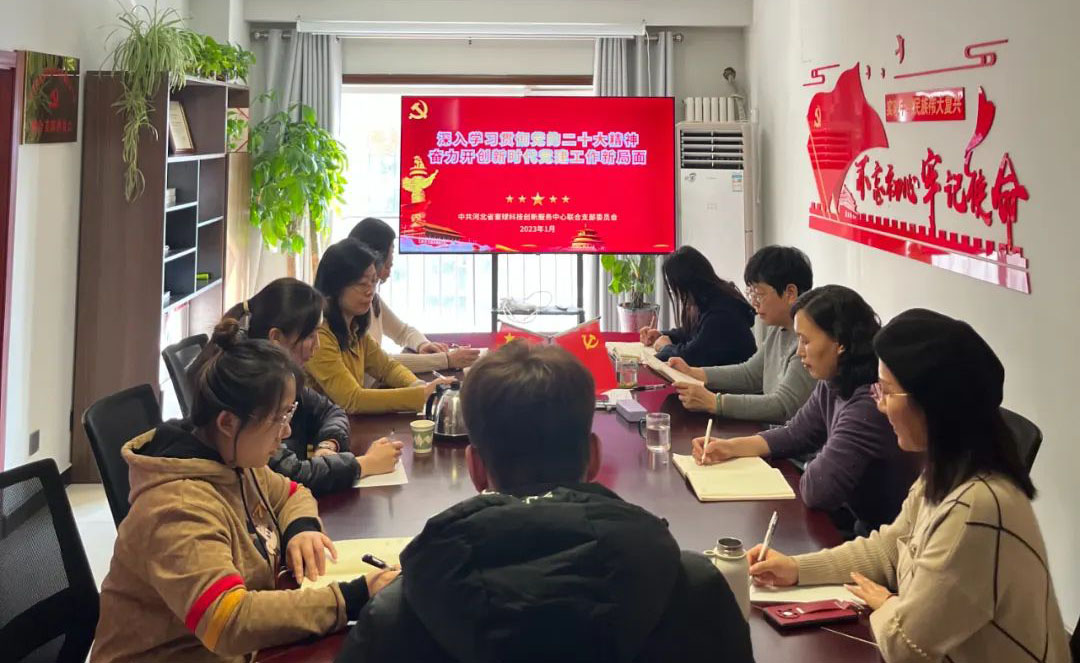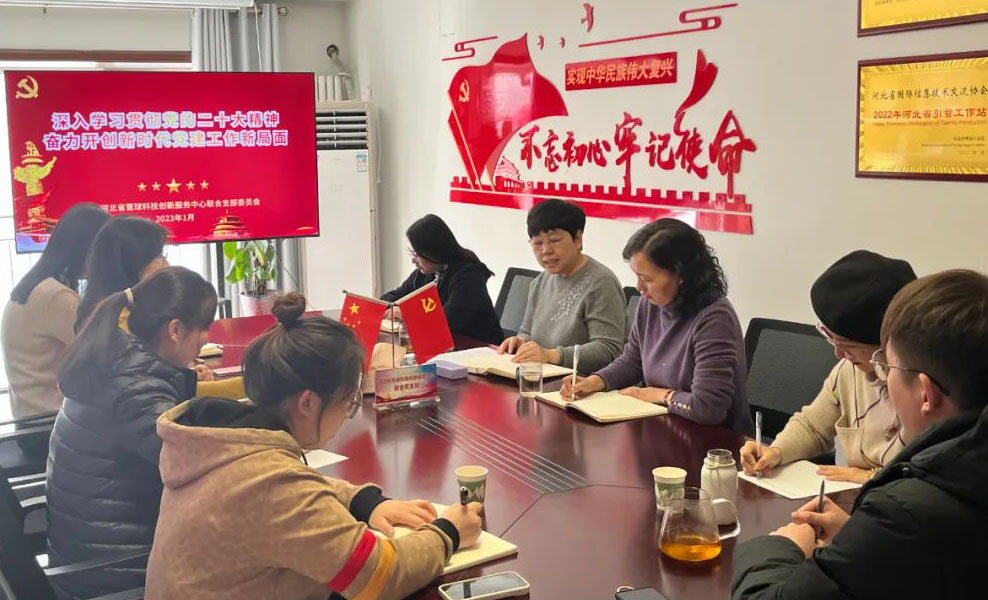 新年新气象,奋进正当时。2023年是全面贯彻落实党的二十大精神开局之年,开局之年当有开局之势,关键之为。1月30日,河北省寰球科技创新服务中心联合党支部召开了“深入学习贯彻党的二十大精神——奋力开创新时代党建工作新局面”专题会议,旨在认真落实新时代党的建设总要求,强化政治引领,提升党建工作质量。会议由党支部书记吴素芬主持,全体党员和入党积极分子参加。